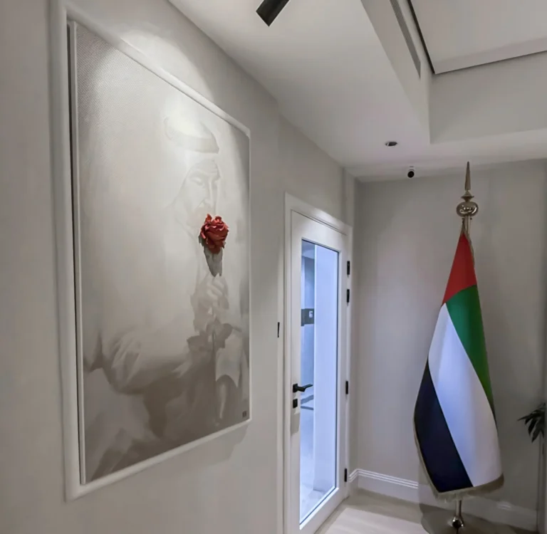 لوحة فنية 2D/3D محفورة على الخشب بإطار جبسي وزخرفة يدوية 80x120 سم. تناسب الصالات والمجالس.