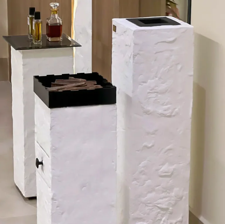 ستاند خشبي بتصميم حجري أنيق مع حامل فحم، حامل عود، وصندوق أكريليك.