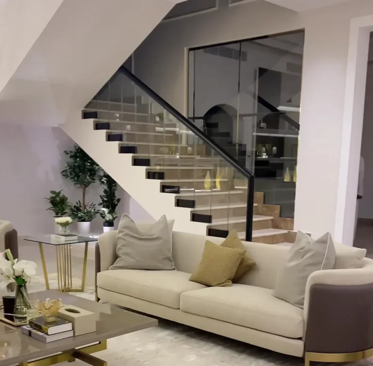 درابزين زجاجي بشرائح زجاجية 12 مم أنيقة وعملية مع التثبيت. مع ثوبا ألومنيوم ذاتي 8 ملم مربع للقمة ويوفر أمانا تماثلنا.