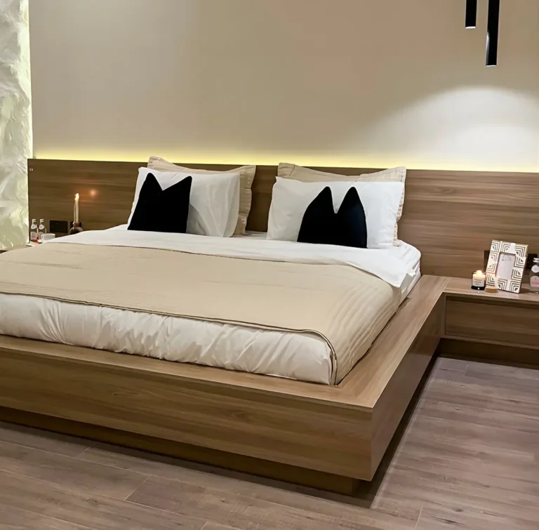 سرير خشبي متكامل بالبلاكونديكو كودجدة واحدة. متعلق على الفيديبورد مع إضاءة مخفية (200×180) سم.